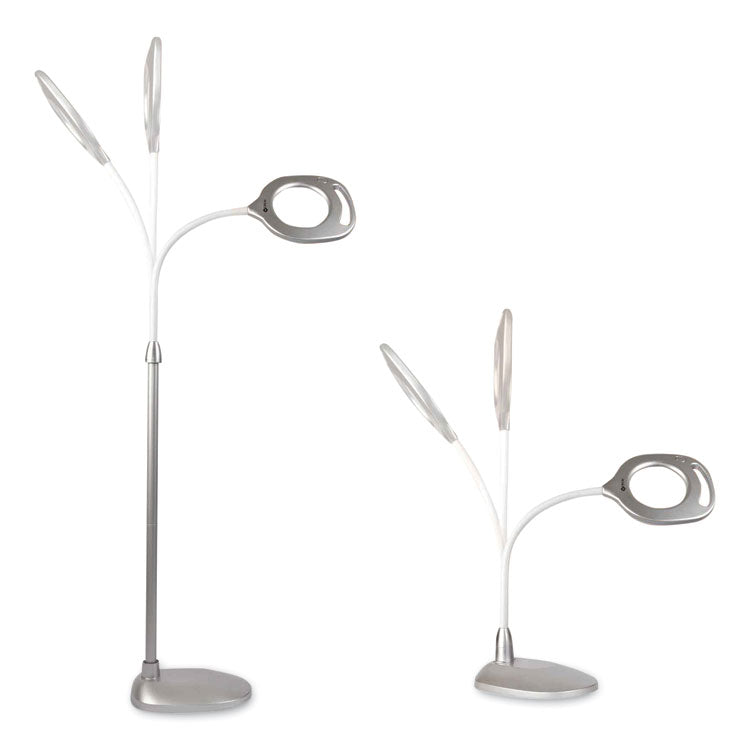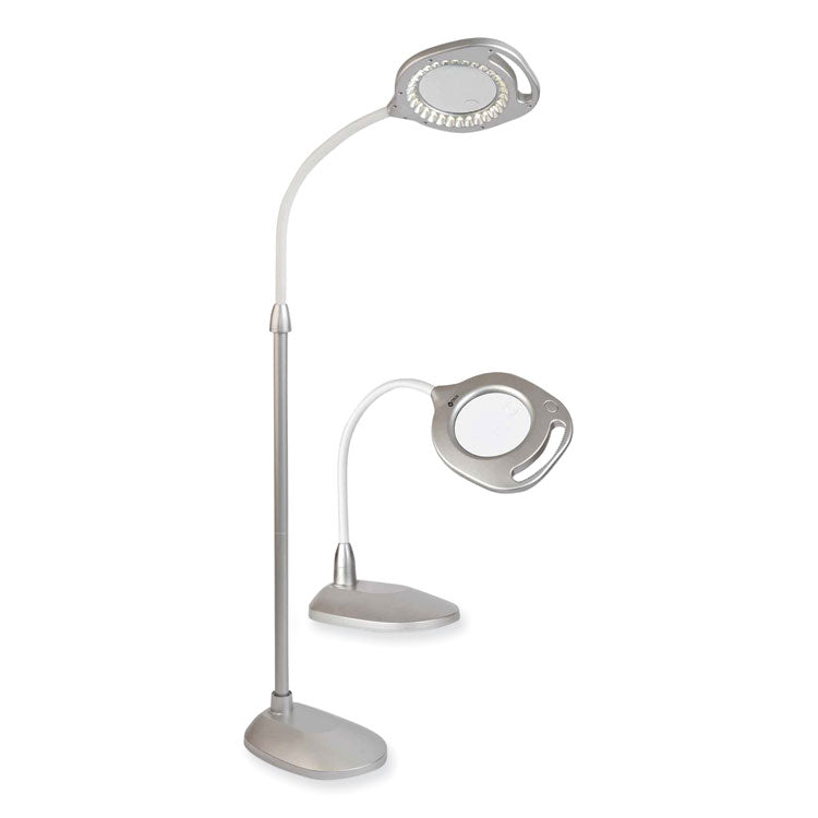 2-in-1 LED Magnifier Floor and Table Light, 39.5" High, Silver/White
