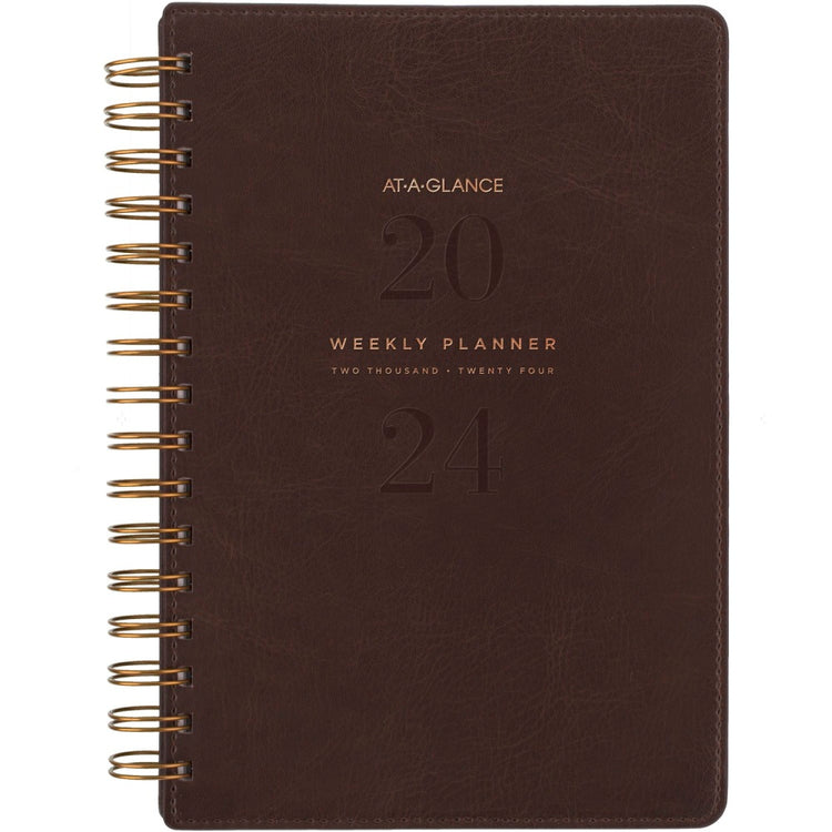 2024-2025 AT-A-GLANCE Signature Collection 13-Month Weekly/Monthly Planner, 5-1/2in x 8-1/2in, Distressed Brown, January 2024 To January 2025, YP20009