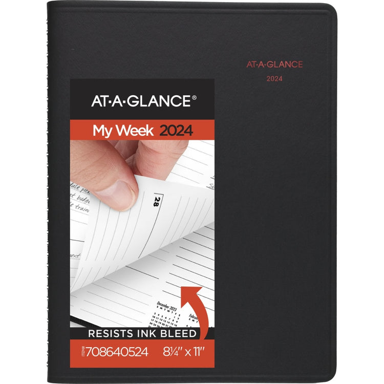 2024 AT-A-GLANCE 800 Range Weekly/Monthly Appointment Book Planner, 8-1/4in x 11in, Black, January To December 2024, 7086405