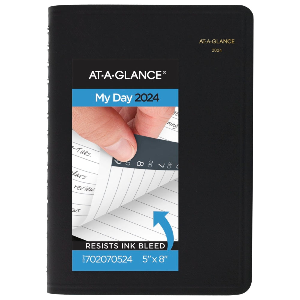 2024 AT-A-GLANCE Daily Appointment Book Planner, 5in x 8in, Black, January To December 2024, 7020705