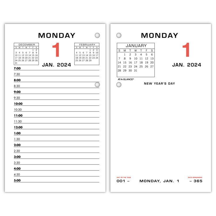 2024 AT-A-GLANCE Daily Loose-Leaf Desk Calendar Refill, 3-1/2in x 6in, January to December 2024, E01750