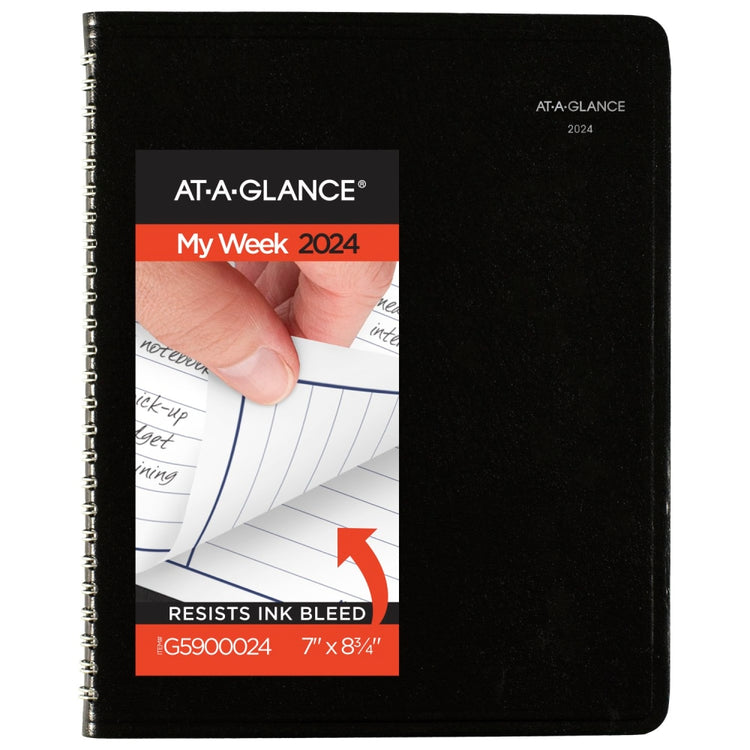 2024 AT-A-GLANCE DayMinder Column Style Weekly Planner, 7in x 8-3/4in, Black, January To December 2024, G59000