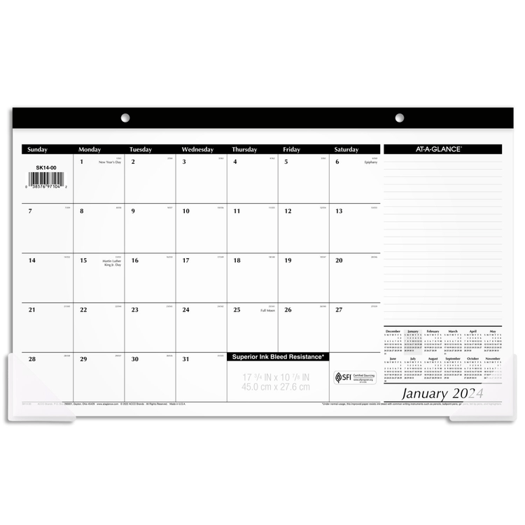 2024 AT-A-GLANCE Desk Pad Calendar, 17-3/4in x 11in, January To December 2024, SK1400