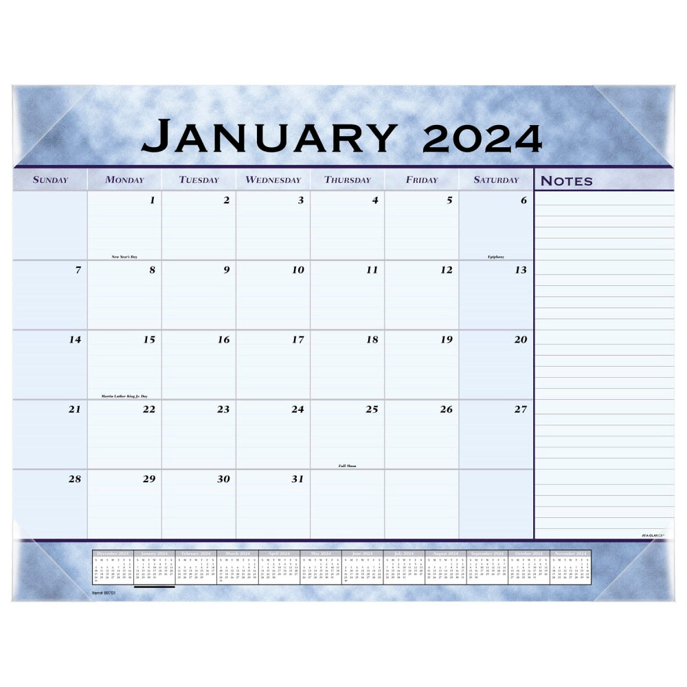 2024 AT-A-GLANCE Monthly Desk Pad Calendar, 21-3/4in x 17in, Slate Blue, January To December 2024, 89701