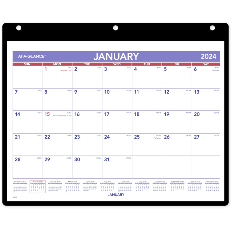 2024 AT-A-GLANCE Monthly Desk/Wall Calendar With Jacket, 11in x 8in, January to December 2024, SK800
