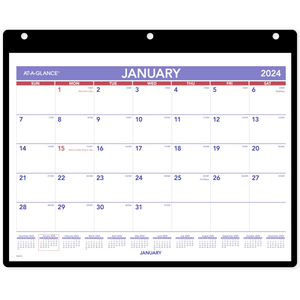 Keep track of your schedule with the AT-A-GLANCE Monthly Desk/Wall Calendar With Jacket. The clear cover helps protect the pages, and the 3-hole punched design means you can add it to your binder.