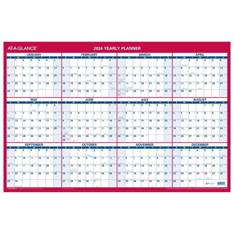 2024 AT-A-GLANCE Vertical/Horizontal Reversible Erasable Yearly Wall Calendar, 36in x 24in, January to December 2024, PM26B28