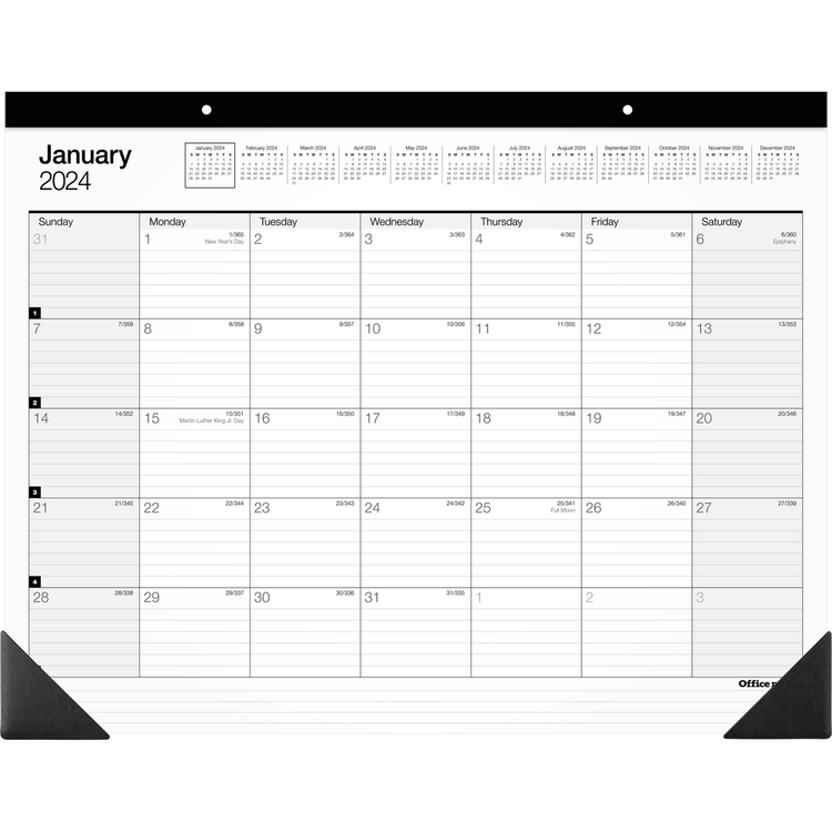 2024 Office Depot Brand Monthly Desk Pad Calendar, 21-3/4in x 17in, White, January To December 2024 , SP24D00
