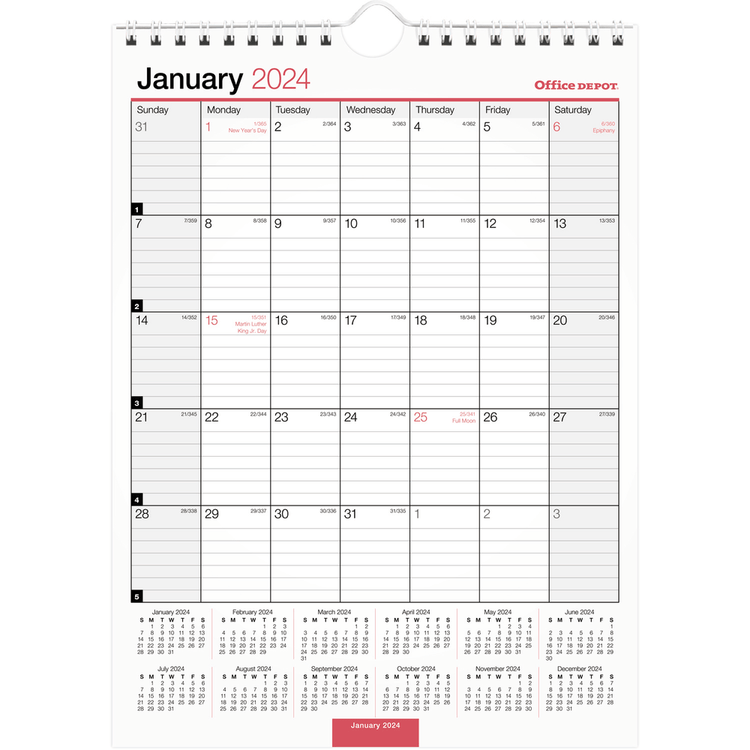 2024 Office Depot Brand Monthly Wall Calendar, 8in x 11in, White, January to December 2024 , OD301328