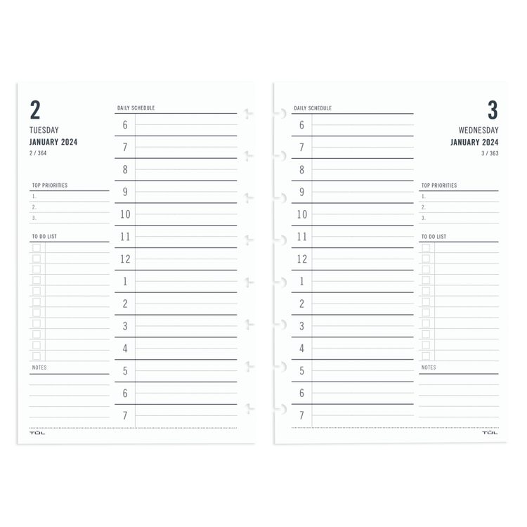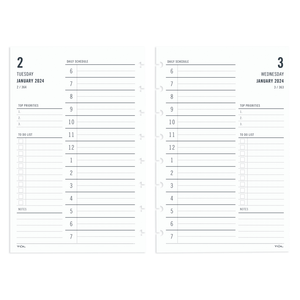 2024 TUL Discbound Daily Planner Refill Pages, Hourly Appointment Times, Junior Size, January To December