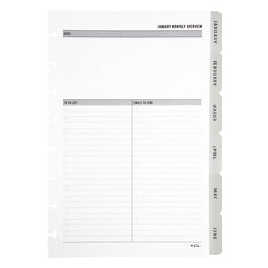 2024 TUL Discbound Monthly Planner Refill Pages With 12 Tab Dividers, Junior Size, Gray, January To December