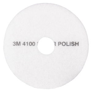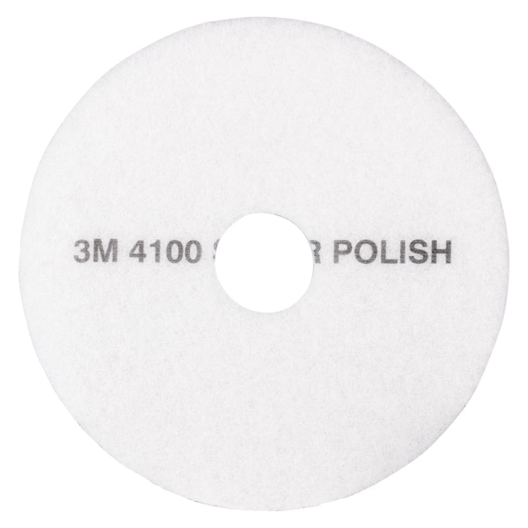 3M 4100 Super Polishing Floor Pads, 20in Diameter, White, Box Of 5