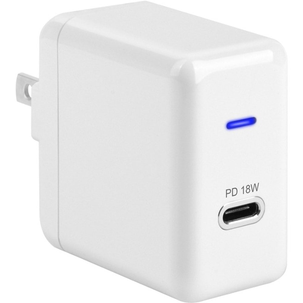 4XEM USB-C 18W Wall Charger - 1 Pack - 18 W - 120 V AC, 230 V AC Input - 5 V DC/3 A, 12 V DC, 3.6 V DC, 9 V DC Output - White