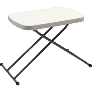 Stay focused on the task at hand with help from an AbilityOne Blow-Molded Adjustable Folding Table. The durable polyethylene top is resistant to dents, scratches and stains for long-lasting use. This folding utility table adjusts in height to suit a variety of users.