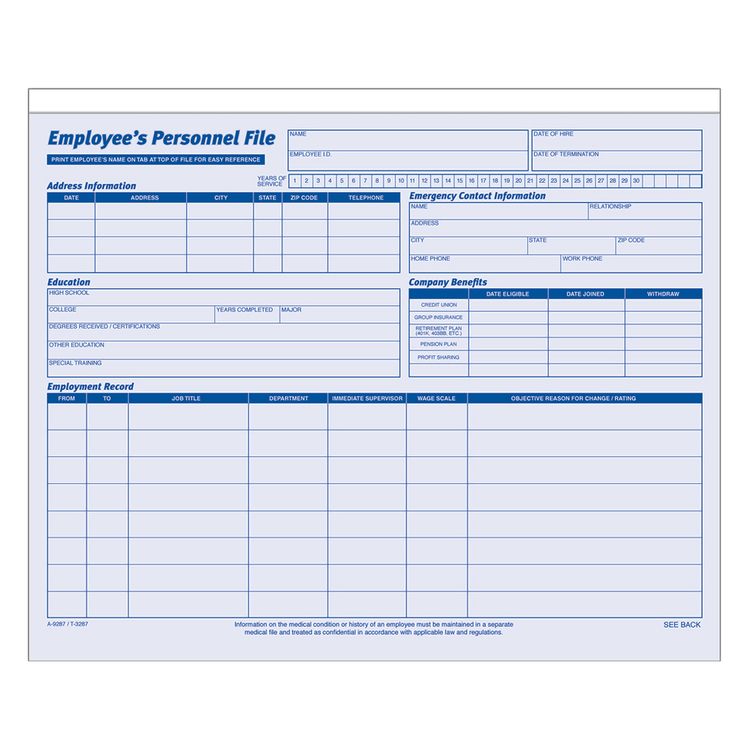 Adams Employee Record Folders, 9 1/2in x 11 3/4in, Folded, Pack Of 20