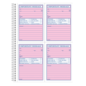 Adams Phone Message Books combine the convenience of a message pad with the security of duplicates for a later reference. They contain ready-to-be-taken messages printed on a white original with a canary yellow copy.