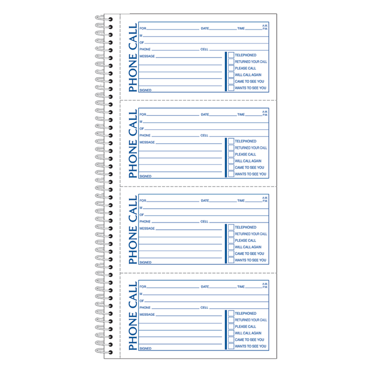 - 4 carbonless duplicate message forms per page.