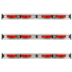 Alpine 5-Hook Mop And Broom Holders, 1-3/4in x 20in 2-7/16in, Red/Gray, Pack Of 3 Racks