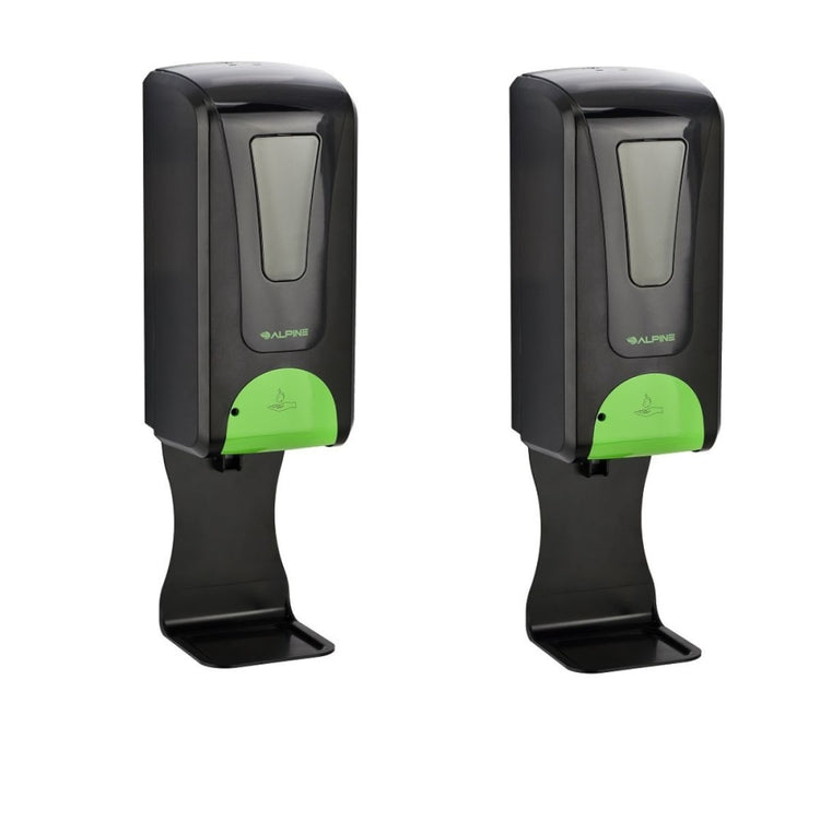Alpine Industries 1200 mL Wall Mount Automatic Gel Hand Sanitizer Dispensers With Drip Trays, Black, Set Of 2 Dispensers