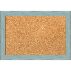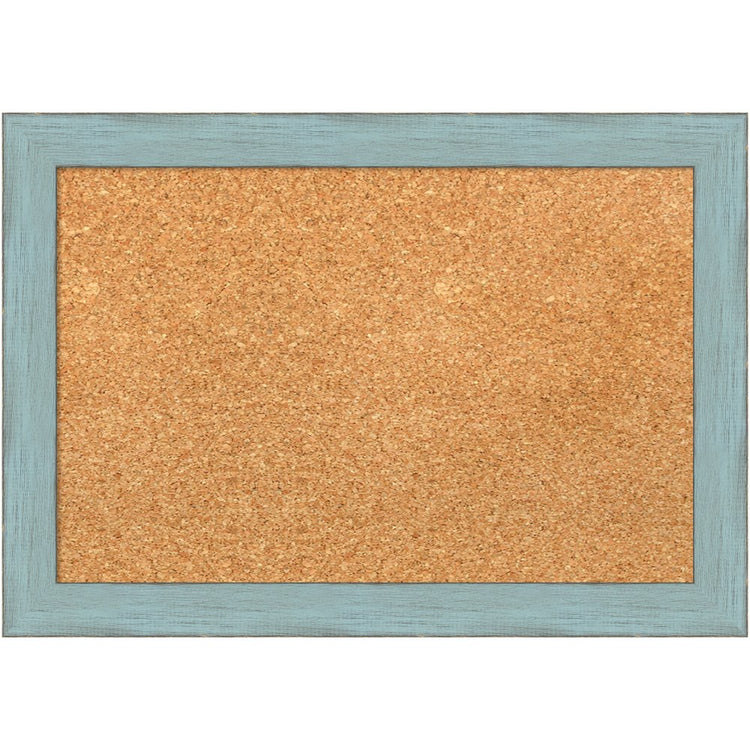 Amanti Art Cork Bulletin Board, 20in x 14in, Natural, Sky Blue Rustic Wood Frame