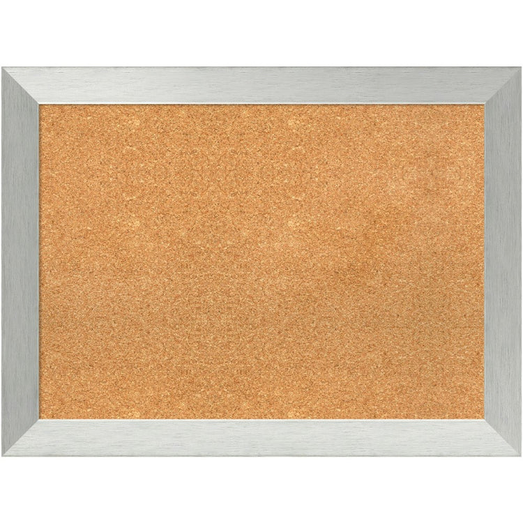 Amanti Art Cork Bulletin Board, 32in x 24in, Natural, Brushed Sterling Silver Wood Frame