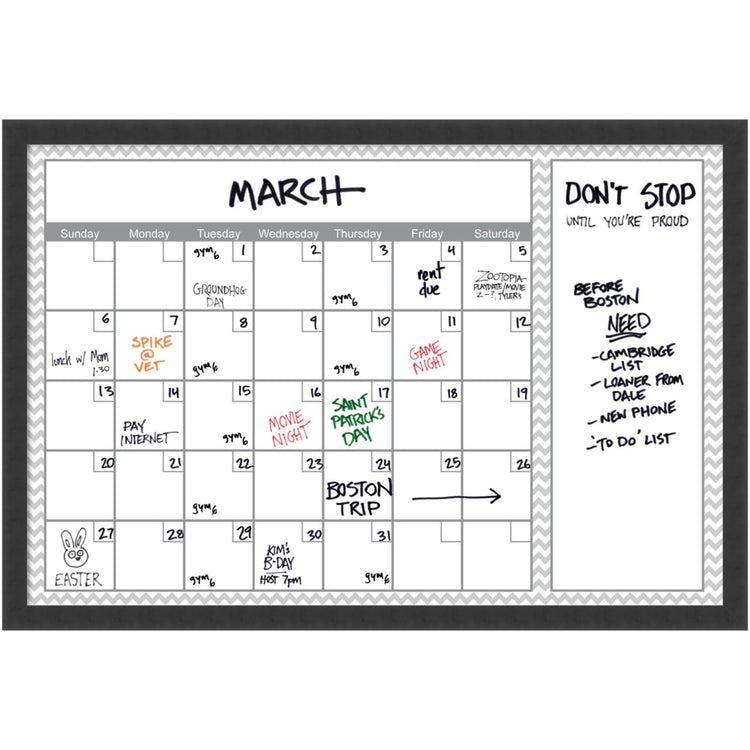 Amanti Art Dry-Erase Calendar, Glass, 38in x 26in, Gray Chevron, Black Wood Frame