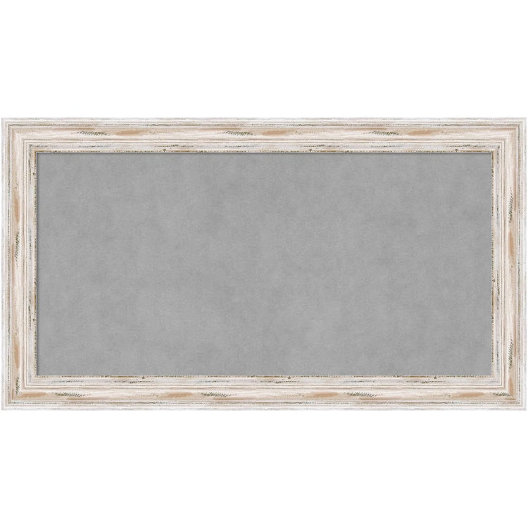 Amanti Art Narrow Magnetic Bulletin Board, Aluminum/Steel, 27in x 15in, Alexandria White Wash Wood Frame