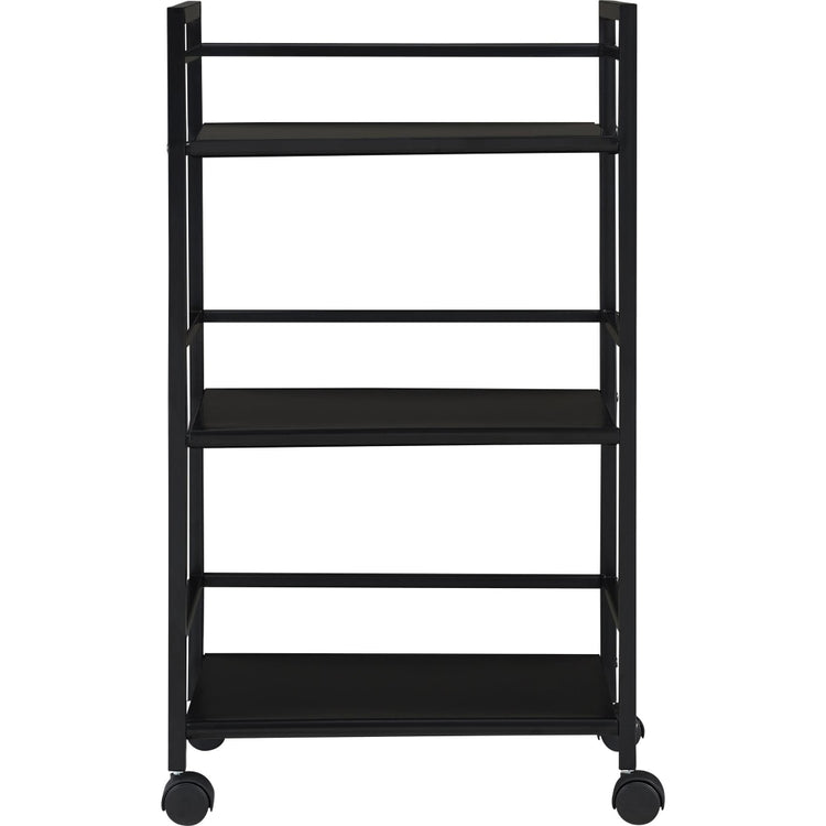 This portable cart lets you carry important items from space to space. Metal and a powder-coat finish add strength and style, while the 3 large shelves offer a simple way to keep accessories nearby.