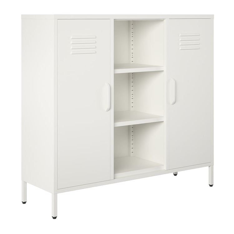 Ameriwood Home Mission District Metal 2-Door Locker Console Table, 40inH x 43-5/16inW x 13-13/16inD, Soft White