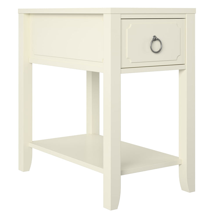 Add modern style to your home courtesy of the Ameriwood Home Novogratz Her Majesty Narrow Side Table. The durable MDF construction offers lasting strength. A built-in drawer and shelf allow you to store boards games, remotes, papers and more with ease.