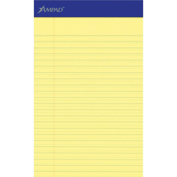 Ampad Perforated Ruled Pads - 50 Sheets - Stapled - 0.28in Ruled - 5in x 8in - Dark Blue Binding - Chipboard Backing, Sturdy Back, Tear Resistant, Perforated - 1 Dozen