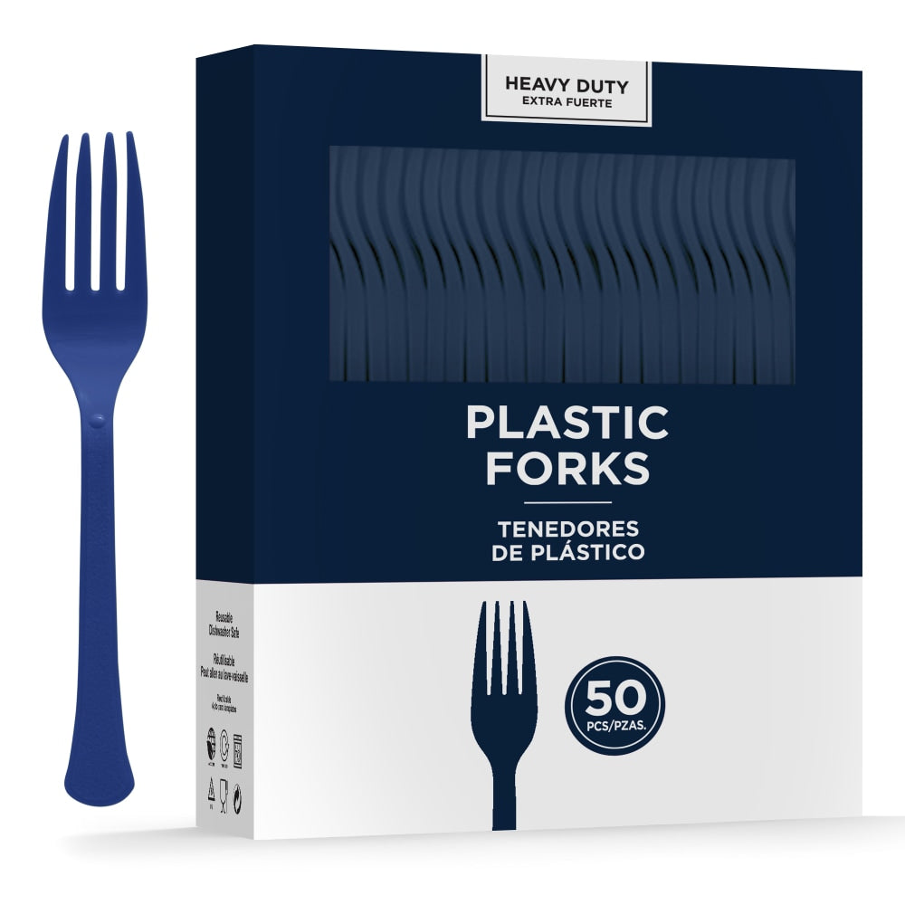 Amscan 8017 Solid Heavyweight Plastic Forks, Navy, 50 Forks Per Pack, Case Of 3 Packs