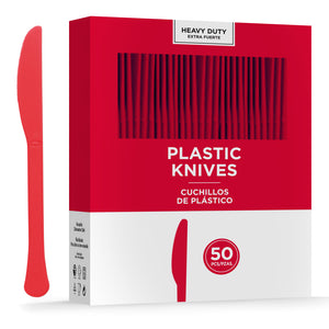 Amscan 8019 Solid Heavyweight Plastic Knives, Apple Red, 50 Knives Per Pack, Case Of 3 Packs