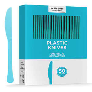 Amscan 8019 Solid Heavyweight Plastic Knives, Caribbean Blue, 50 Knives Per Pack, Case Of 3 Packs