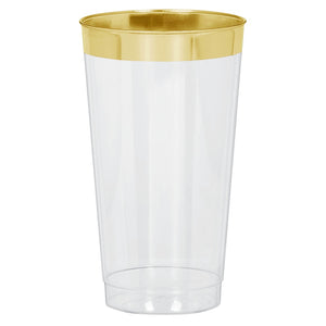 - Clear tumblers feature a gold trim around the lip for a stylish touch.