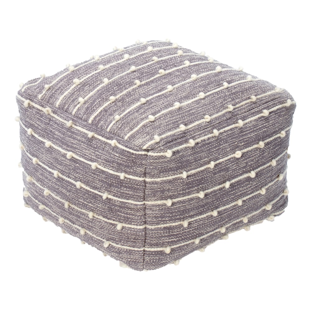 Anji Mountain Georgette Pouf Ottoman, Gray/Ivory
