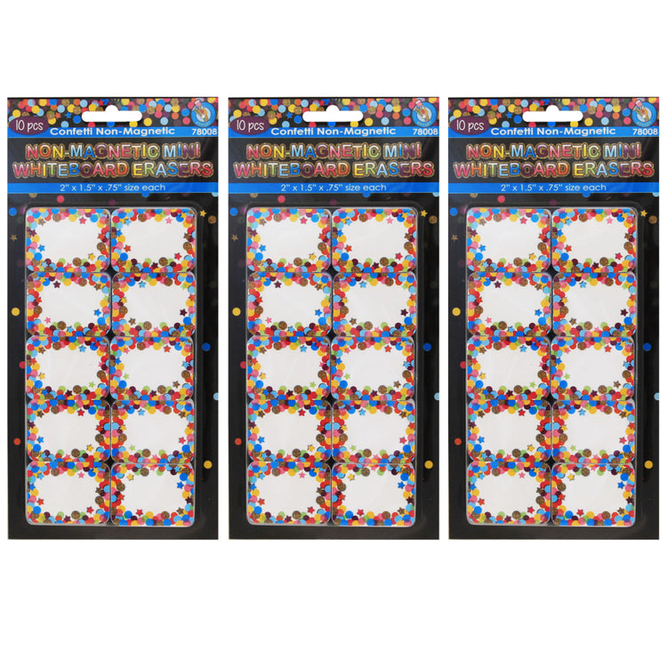 Ashley Productions Non-Magentic Mini Whiteboard Erasers, 1-1/2in x 2in, Confetti, 10 Erasers Per Pack, Set Of 3 Packs