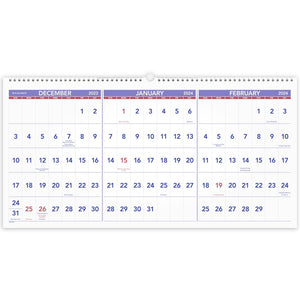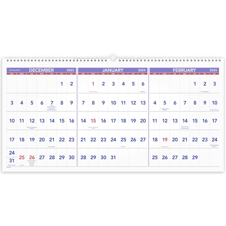 AT-A-GLANCE 3-Month Horizontal 15-Month Wall Calendar, 24in x 12in, December 2023 to February 2025, PM1428