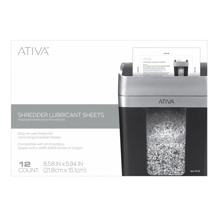 Ativa Shredder Lubricant Sheets, Pack Of 12 Sheets