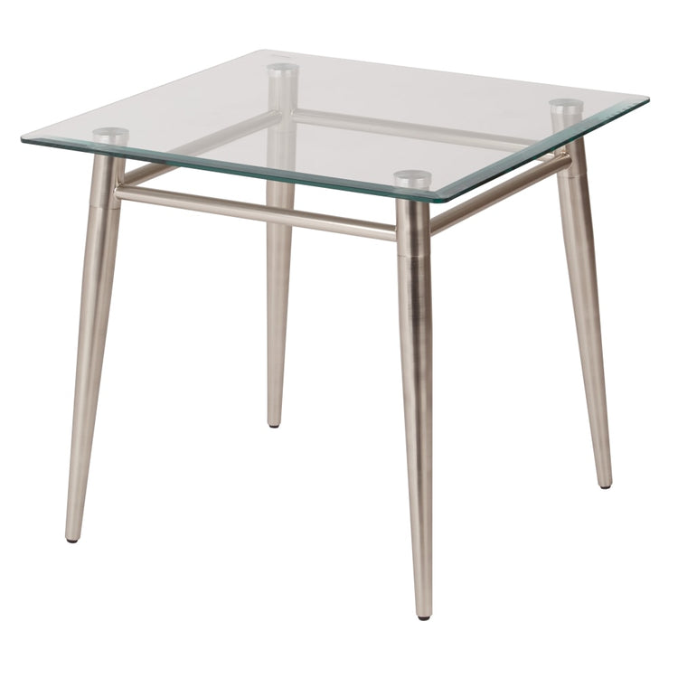 Ave Six Brooklyn Glass-Top Table With Metal Frame, Square End Table, Clear/Brushed Nickel