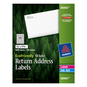 Avery Easy Peel EcoFriendly Permanent Inkjet/Laser Return Address Labels, 48467, 1/2in x 1 3/4in, 100% Recycled, White, Pack Of 8,000