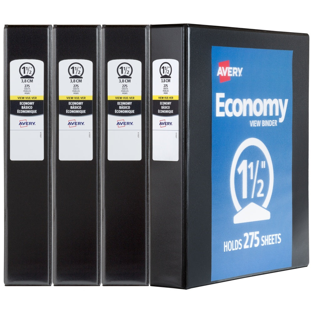 Avery Economy View 3 Ring Binders, 1-1/2in Round Rings, Black, Pack Of 4