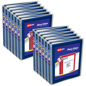 Avery Flexi-View 3 Ring Binder, 1in Round Rings, Navy Blue, Pack Of 12