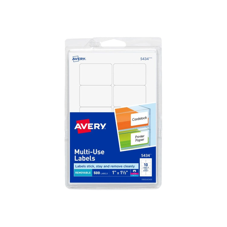 Avery Removable Labels, 5434, Rectangle, 1in x 1-1/2in, White, Pack Of 500