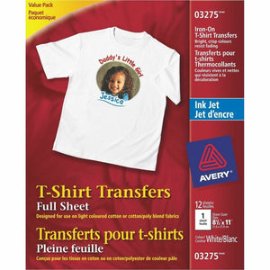 Avery T-Shirt Transfers for Inkjet Printers - Letter - 8 1/2in x 11in - Matte - 12 / Pack - Printable, Easy Peel, Die-cut, Long Lasting, Crack Resistant