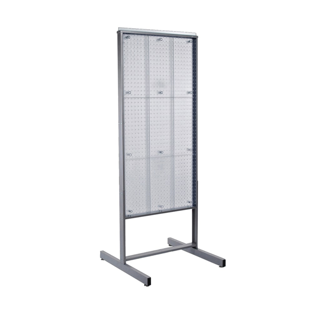 Azar Displays 2-Sided Pegboard Floor Display With Metal Frame, 65inH x 26inW x 22inD, Clear
