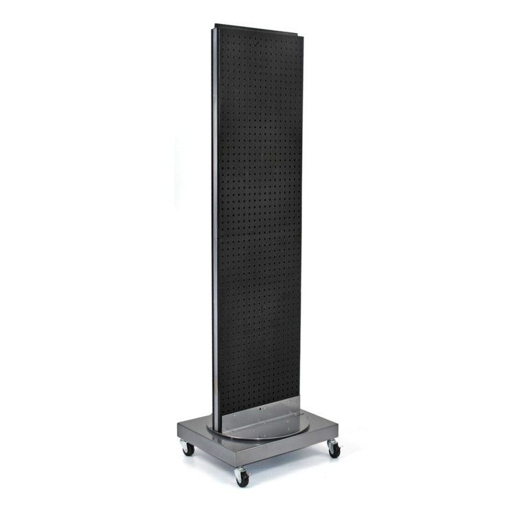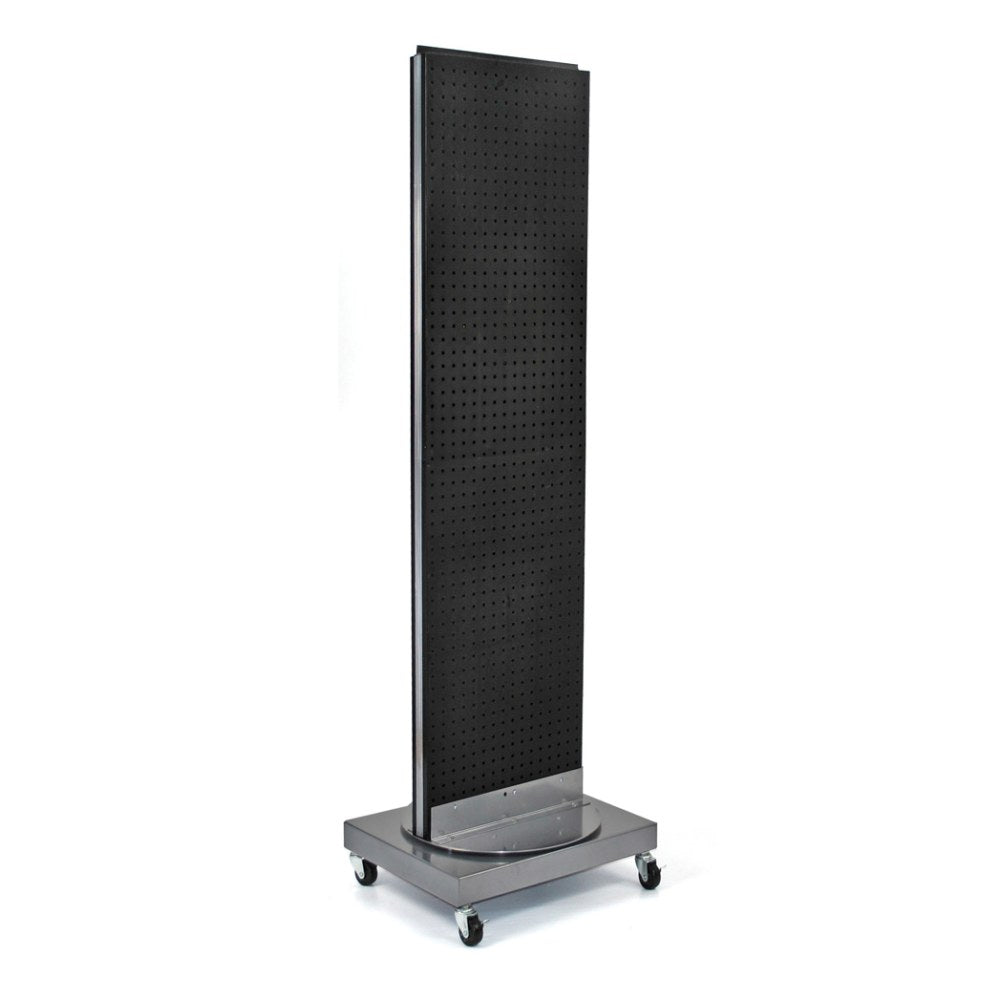 Azar Displays 2-Sided Pegboard Floor Display With Revolving Wheeled Base, 60in x 16in, Black