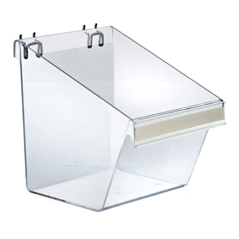 Azar Displays Bucket Displays For Pegboard/Slatwall, C-Channel And Metal U-Hooks, Medium Size, 9in x 8in x 6in, Clear, Pack Of 4