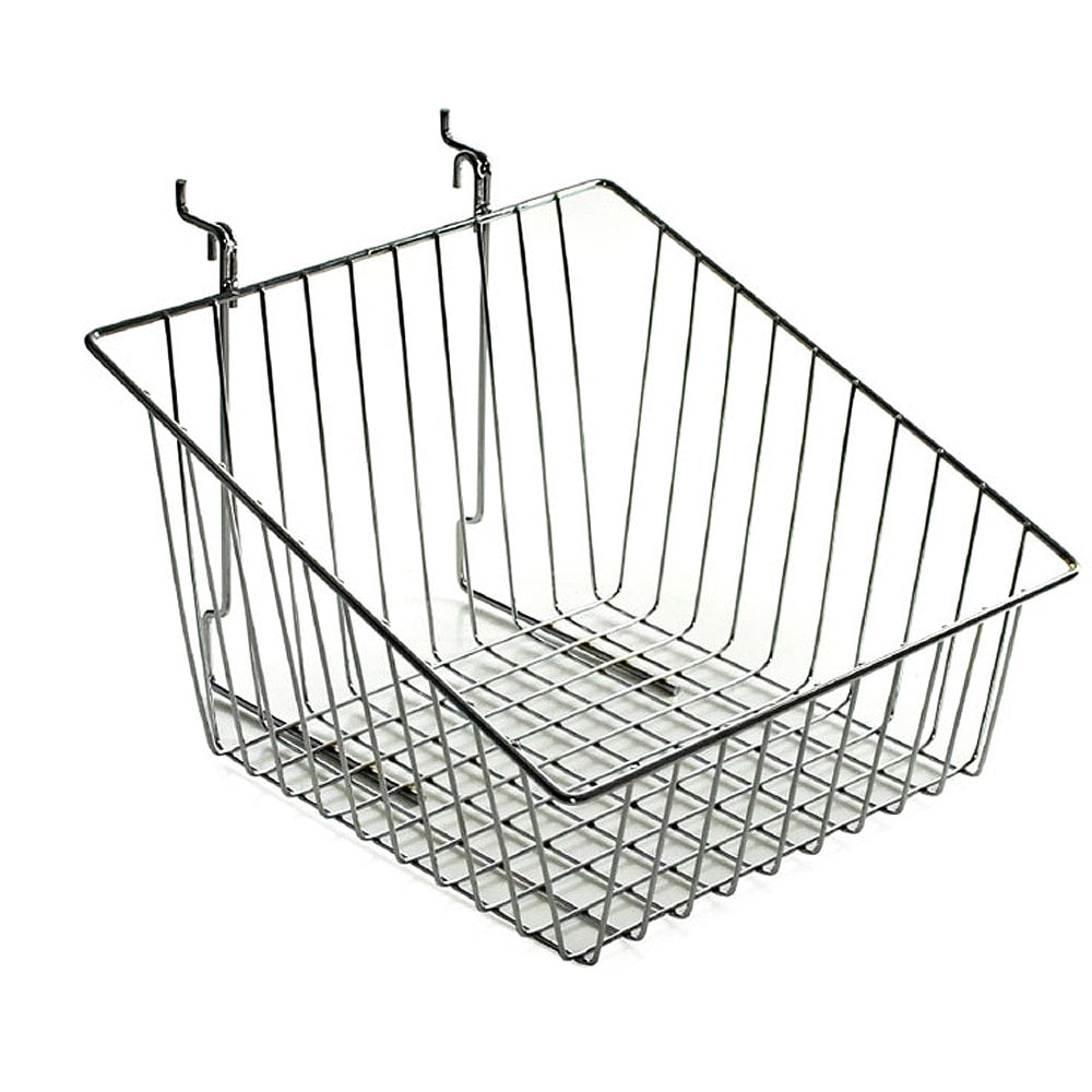 Azar Displays Chrome Wire Baskets, Medium Size, Sloped, 8in x 12in x 12 1/2in, Silver, Pack Of 2