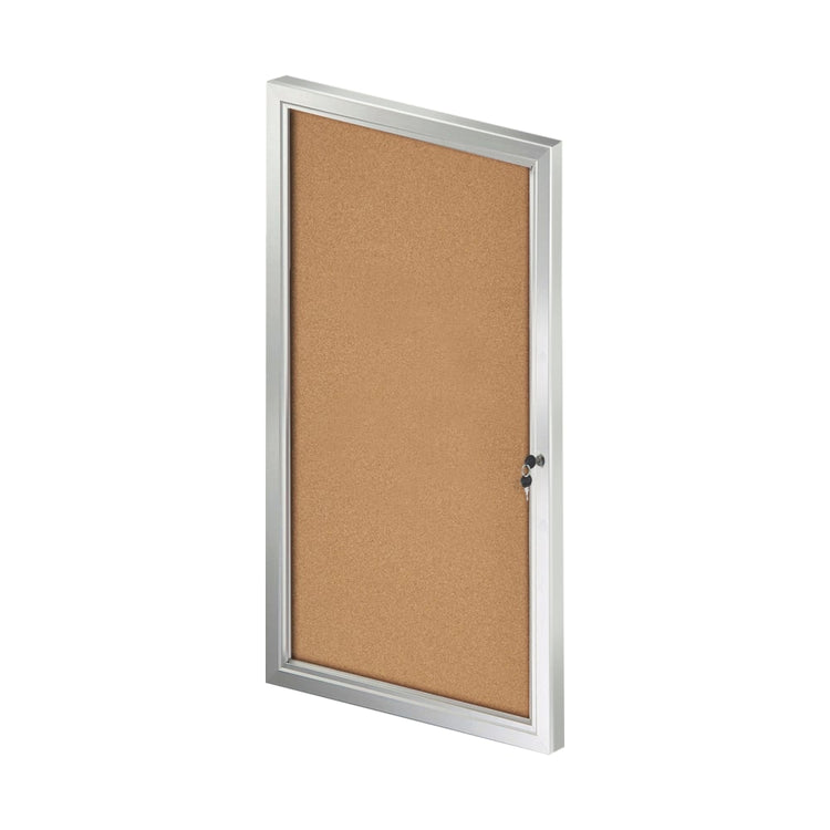 Azar Displays Enclosed Cork Bulletin Board With Lock And Key, Brown, 42-5/16in x 23in, Silver Aluminum Frame